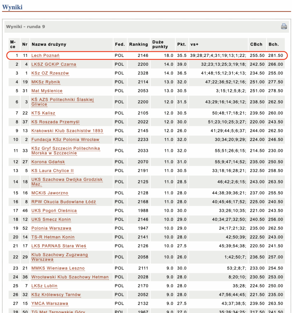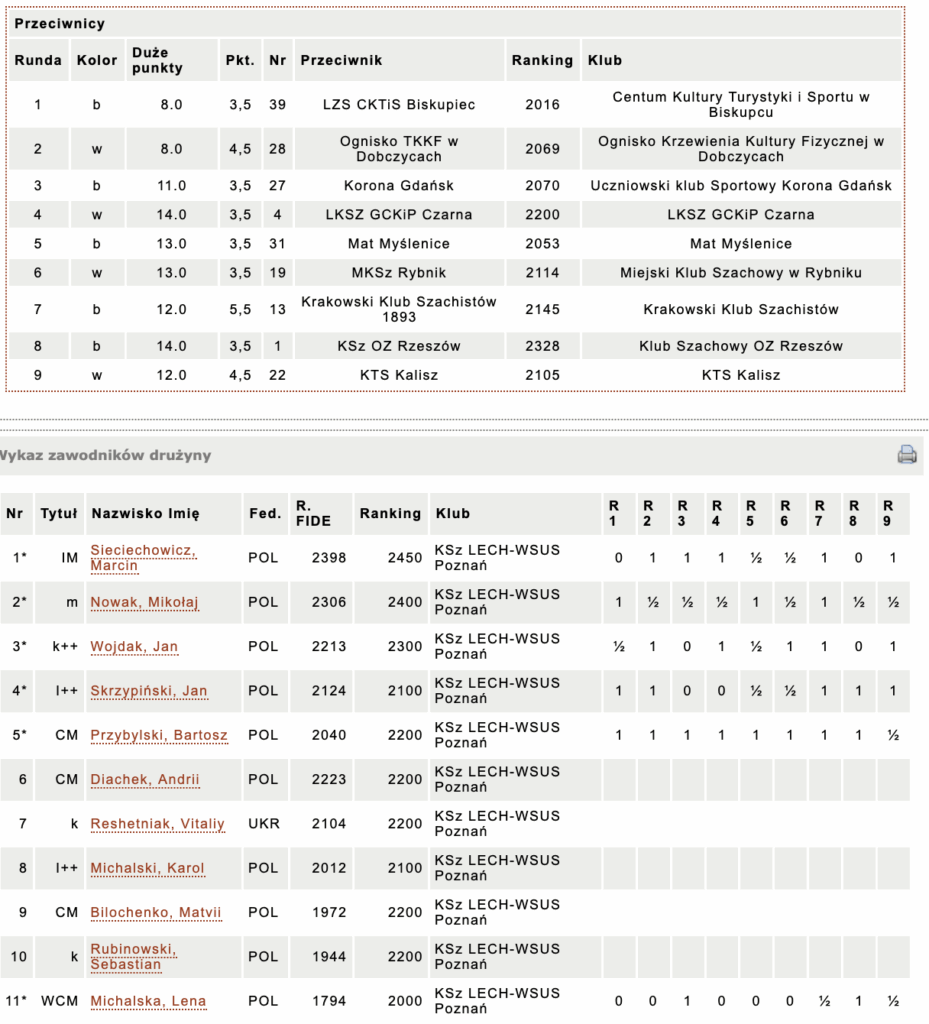 „Lech Poznań zdominował II ligę wygrywając każdy mecz!” – tak podsumował portal szachowy Infoszach wynik naszej drużyny seniorskiej. Dziękujemy za ten komplement, który motywuje nas do kontynuacji rozwoju naszego klubu w tym pierwszej drużyny seniorskiej.